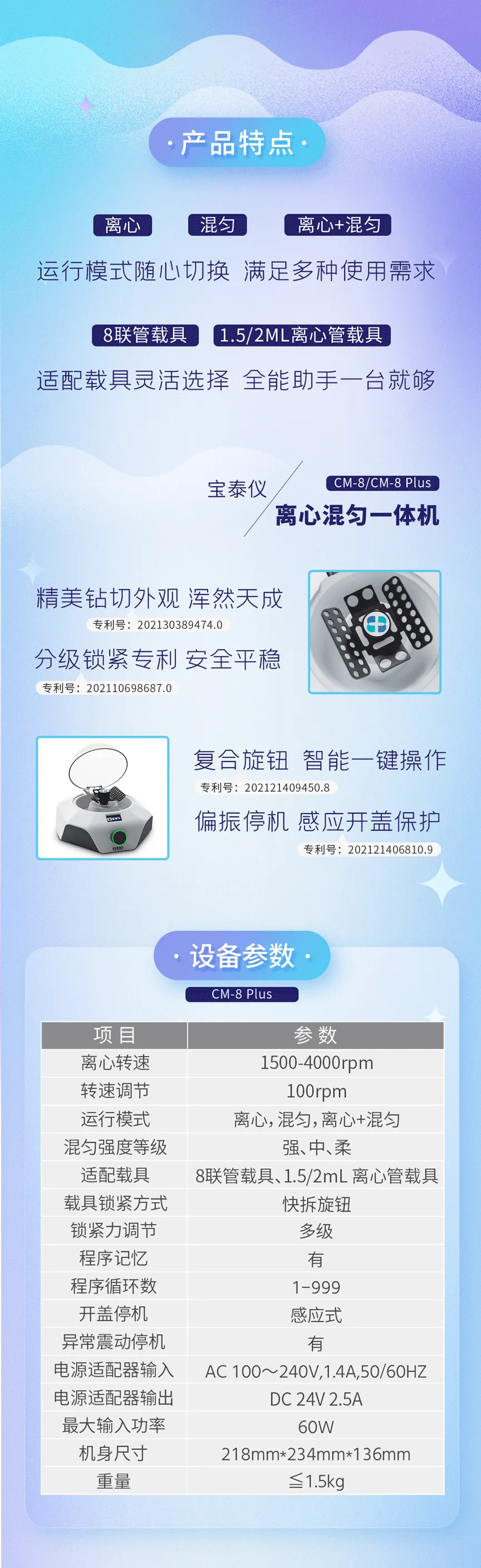 Centrifugation and mixing are performed in one stepRapidly enhance the operational efficiency of the PCR laboratoryThe Baotaiyi CM-8, which quickly gained popularity with its strength