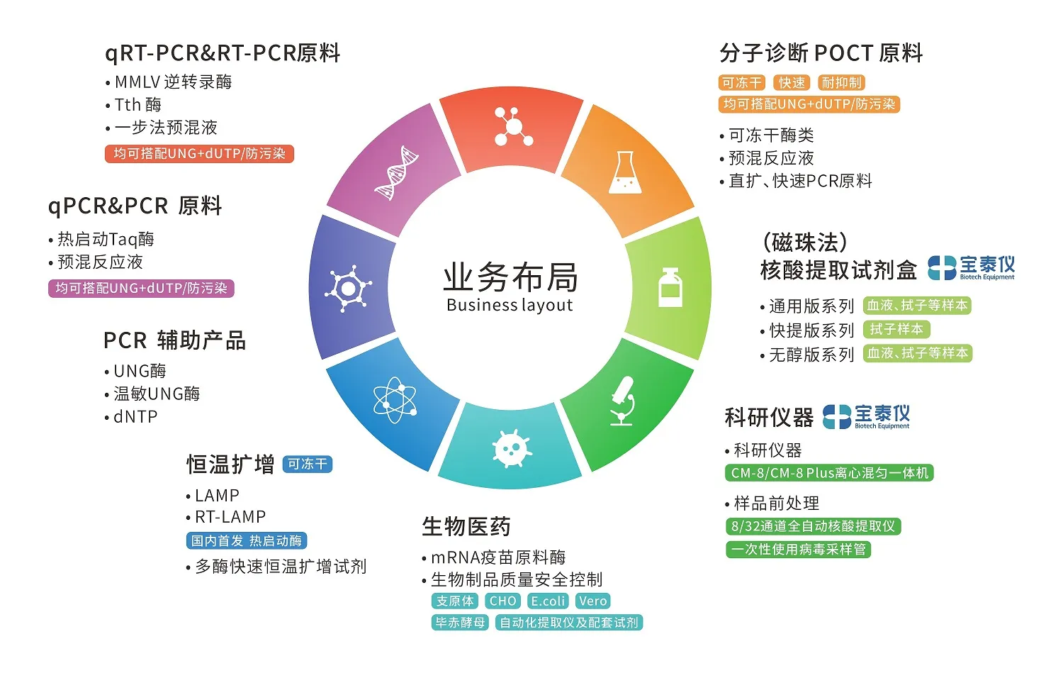 Baorui Biotechnology offers a comprehensive range of key enzyme raw materials and premixes for nucleic acid diagnosis. These products feature excellent performance and stable quality control, and are widely used in the research and development and production of nucleic acid diagnostic reagents by numerous domestic enterprises. In recent years, Baorui Biotechnology has continuously achieved results in the expansion of upstream technologies in nucleic acid diagnosis. Its constant-temperature amplification, mRNA vaccine raw material enzymes, new automated instruments, and nucleic acid extraction series products have been successively launched on the market, which can provide customers with comprehensive upstream overall solutions.