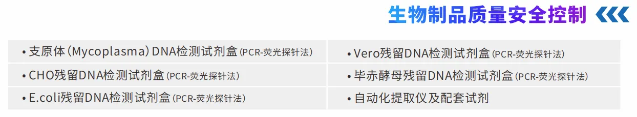 Meanwhile, Baorui Biotechnology, based on magnetic bead extraction and real-time fluorescence quantitative PCR technology, We have now developed a series of products including Mycoplasma DNA detection kits, CHO residual DNA detection kits, E.coli residual DNA detection kits, Vero residual DNA detection kits, Pichia pastoris residual DNA detection kits, automatic extraction instruments and their matching reagents. It can provide professional solutions for the field of quality and safety control of biological products.